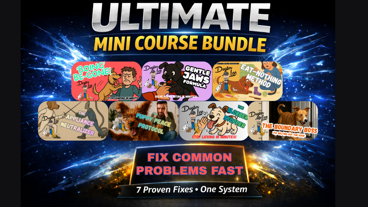 Solve the most common dog behavior problems without long training sessions, treats, or guesswork. This bundle includes 7 short, targeted mini courses designed to fix specific issues using clear rules, proper follow-through, and practical application. Each course is focused and built to produce results fast. These are problem-specific solutions, not a full training system. They’re designed to give you quick wins and show you how Dogtor Lee approaches real-world behavior.